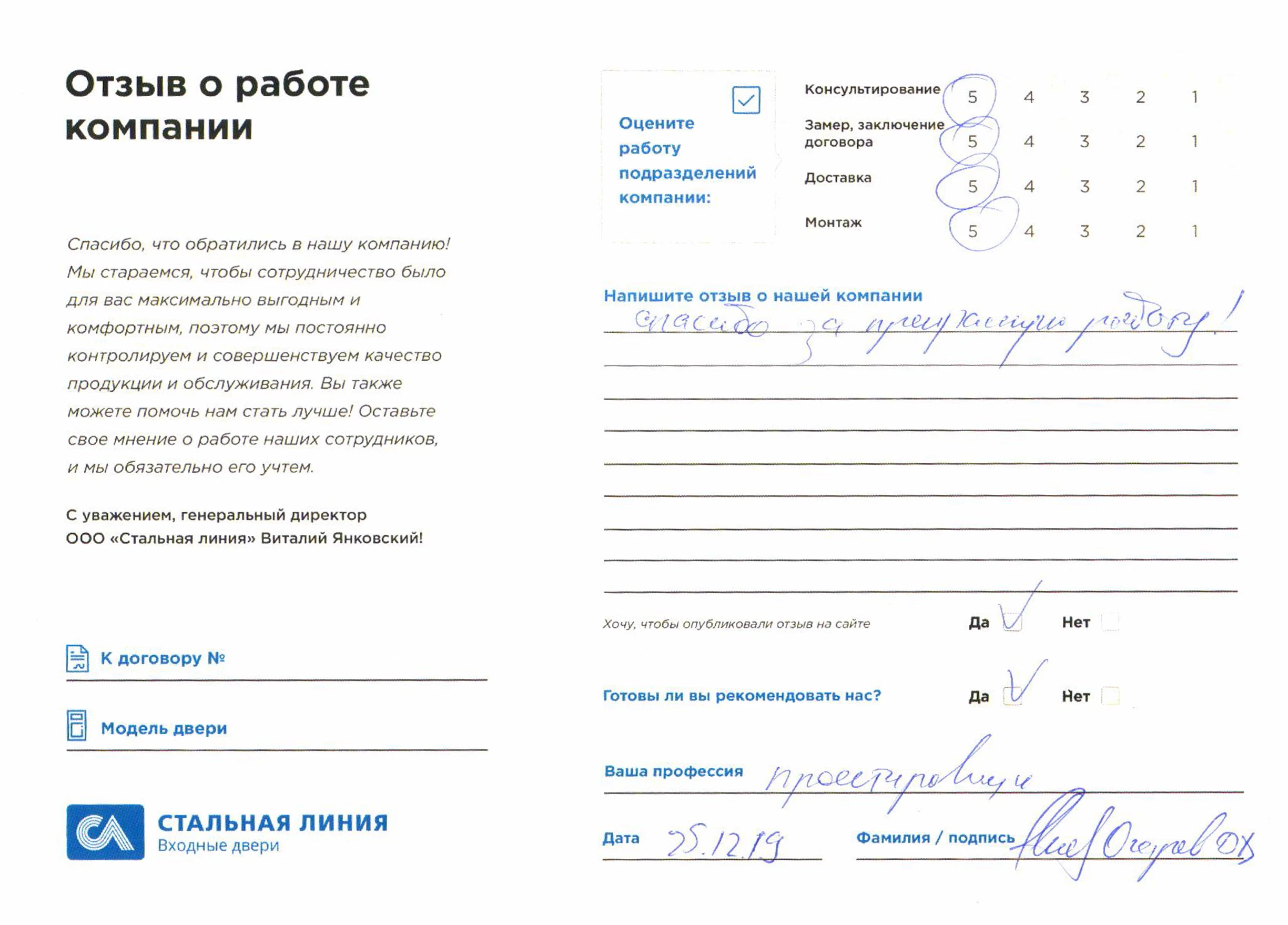 Отзыв от ООО «Проектное бюро «Конструктор»