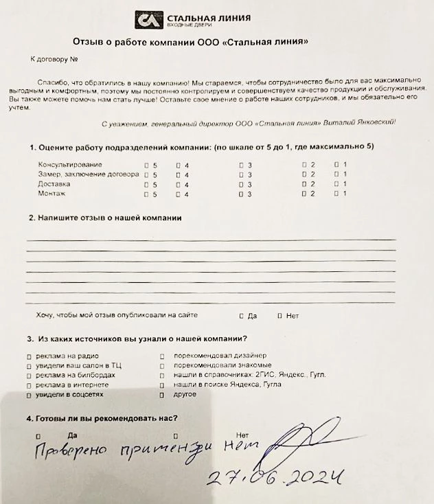 Дверь проверена, претензий нет